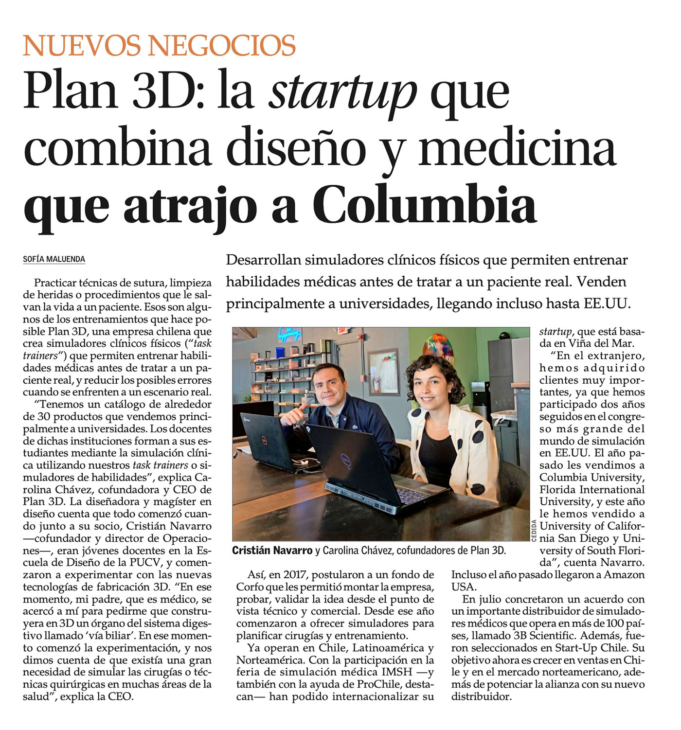 In July, they entered into an agreement with a major distributor of medical simulators operating in more than 100 countries, called 3B Scientific. In addition, they were selected in Start-Up Chile. Its objective now is to grow sales in Chile and in the North American market, in addition to strengthening the alliance with its new distributor.