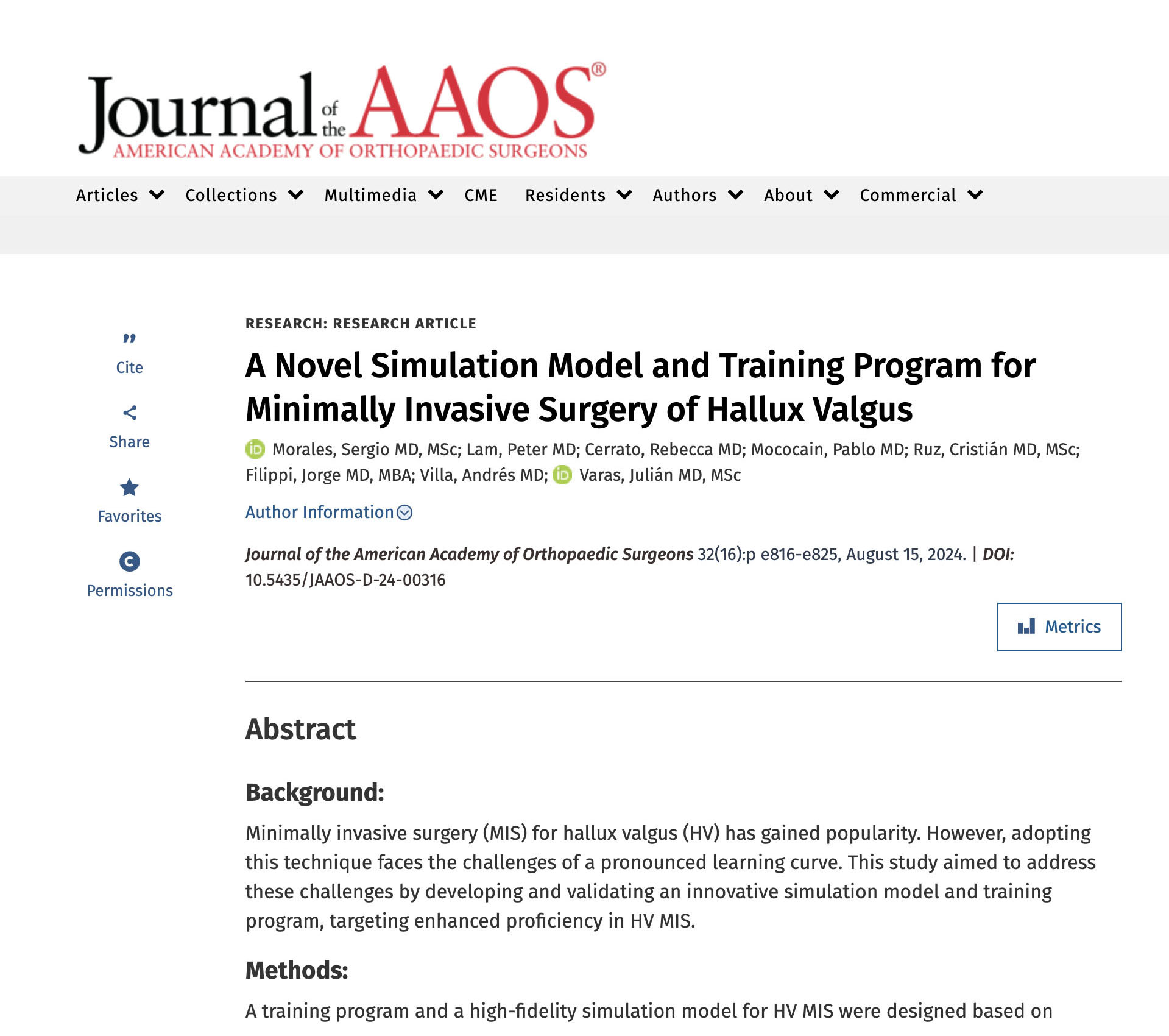 Recientemente, el Doctor Sergio Morales, traumatólogo de la Pontificia Universidad Católica de Chile y Especialista en Cirugía de Tobillo y Pie, publicó un estudio científico en la Revista de la Academia de Cirujanos Ortopédicos Estadounidenses (JAAOS) donde presenta un nuestro innovador modelo simulado y un programa de entrenamiento para la cirugía mínimamente invasiva del hallux valgus. Su enfoque innovador tiene como objetivo equipar a los cirujanos con las habilidades esenciales necesarias para dominar la técnica de cuarta generación de la cirugía MIS HV.