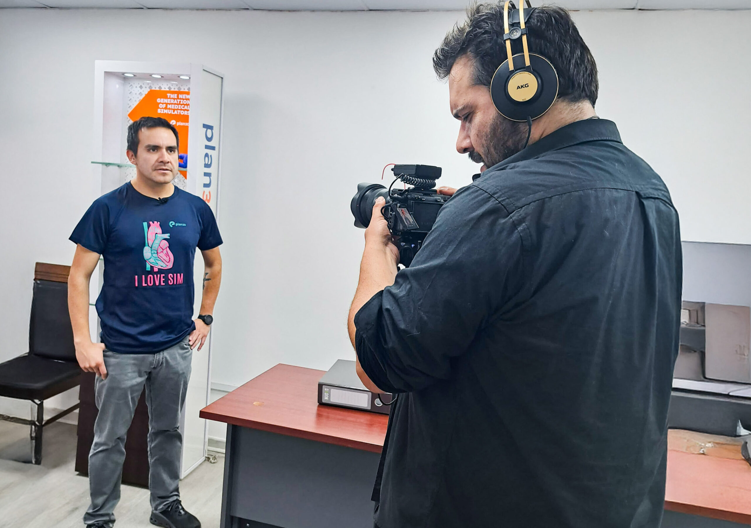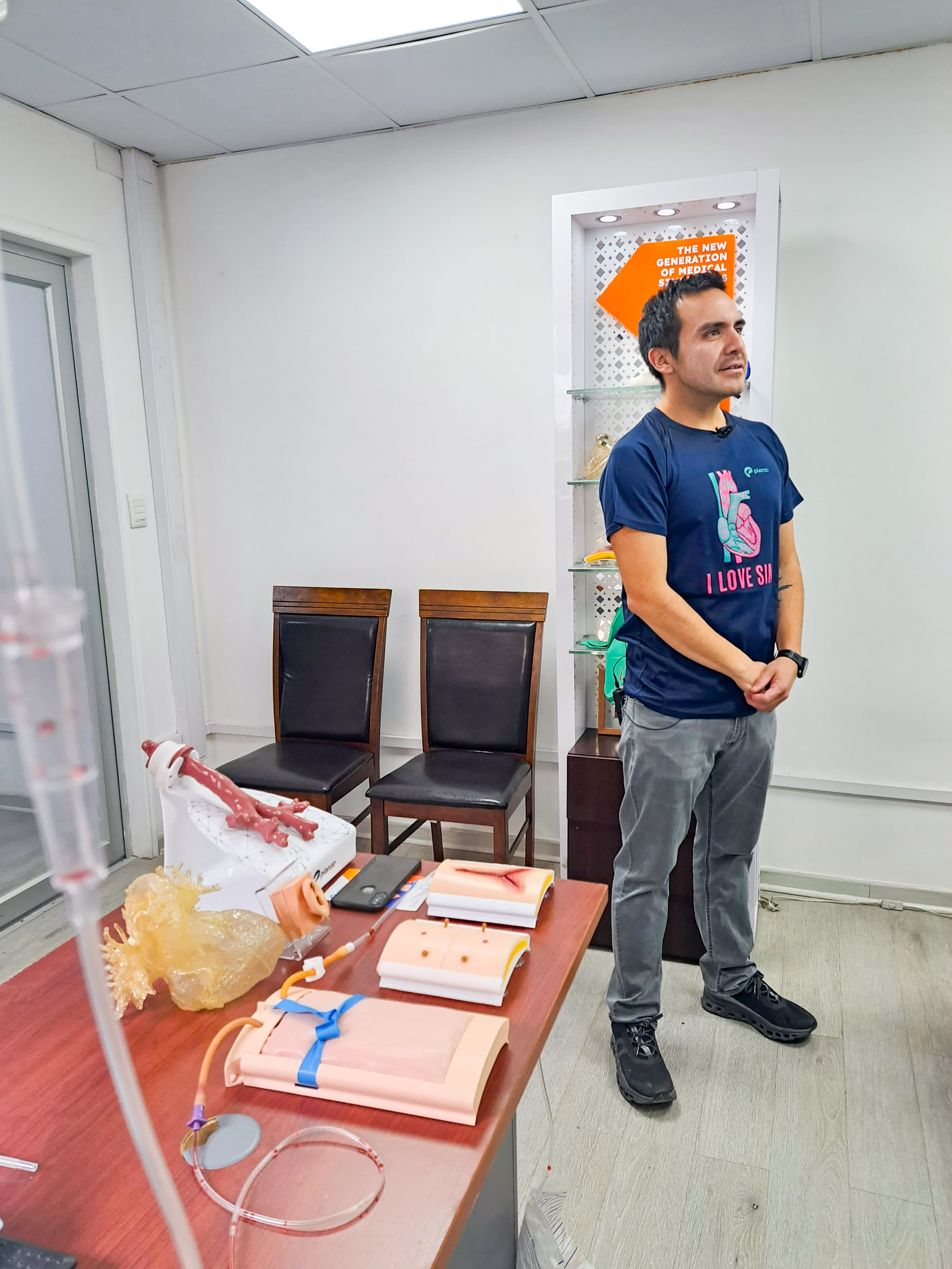 Además, Carolina y Cristian presentaron parte del catálogo de simuladores clínicos desarrollados por PLAN3D, permitiendo que la comunidad universitaria conociera de cerca cómo la innovación aplicada puede generar un impacto concreto en la formación de profesionales de la salud.
