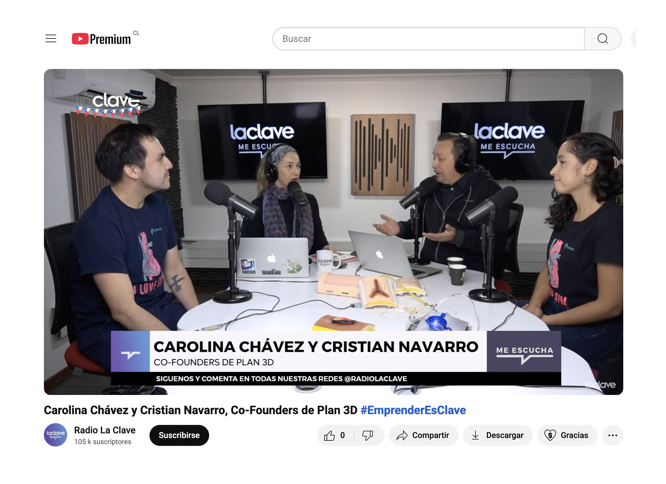 La Tercera abordó los orígenes de PLAN3D como un pequeño laboratorio digital fundado por dos diseñadores, que evolucionó hasta transformarse en una empresa que hoy produce extremidades, órganos y simuladores para prácticas clínicas mediante impresión 3D. El medio destaca su presencia en América y Europa, un catálogo de 26 productos y su impacto en la formación de profesionales de la salud.