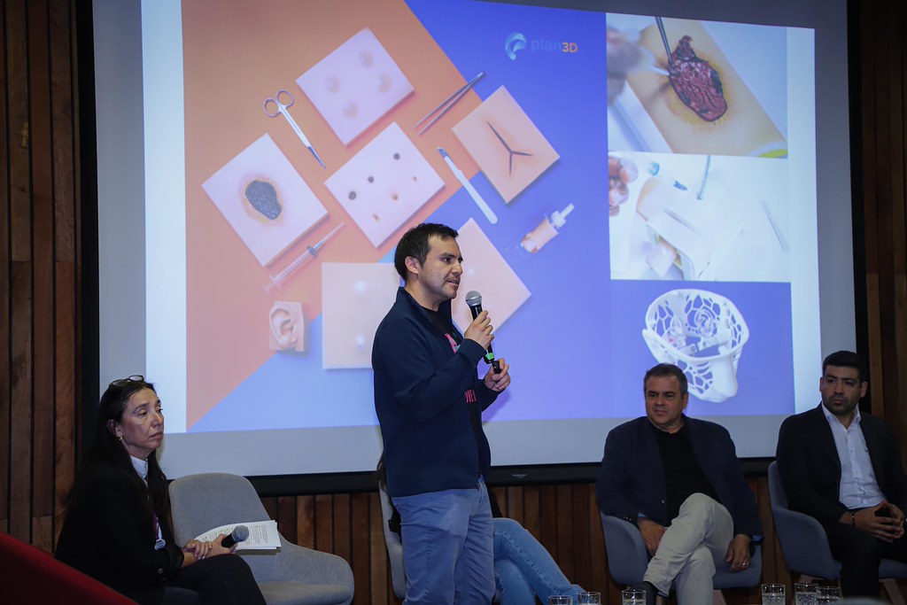 Durante la jornada, Cristian compartió la visión y experiencia de PLAN3D en el desarrollo de soluciones tecnocreativas aplicadas a la simulación en salud, destacando el valor de crear innovación desde Chile hacia el mundo.
